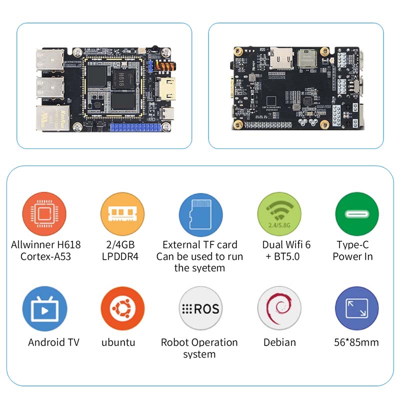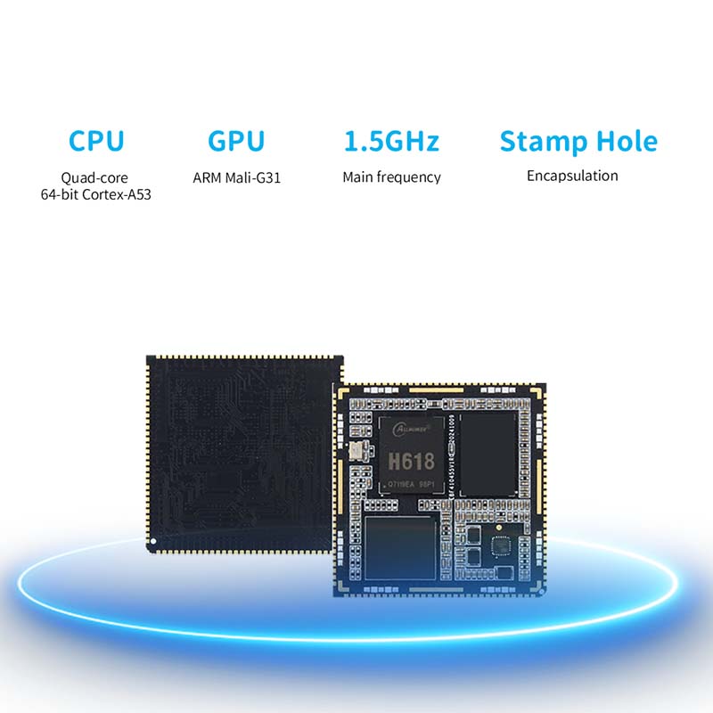 1. CPU: peamine kiip: Allwinner H618, 4-tunnine 64-bitine Cortex-A53